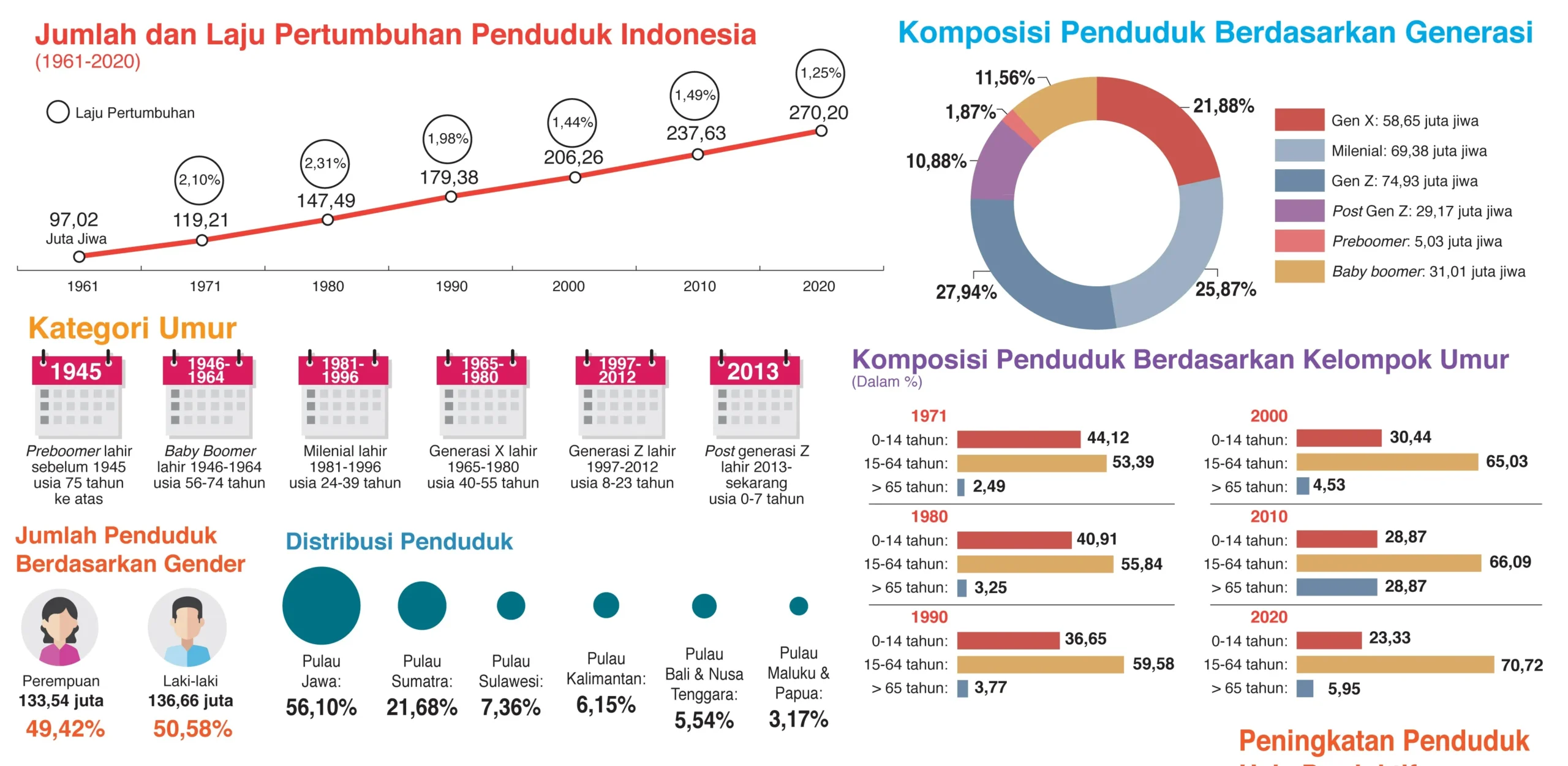 Grafik Penduduk Indonesia menurut Usia hasil sensus 2020